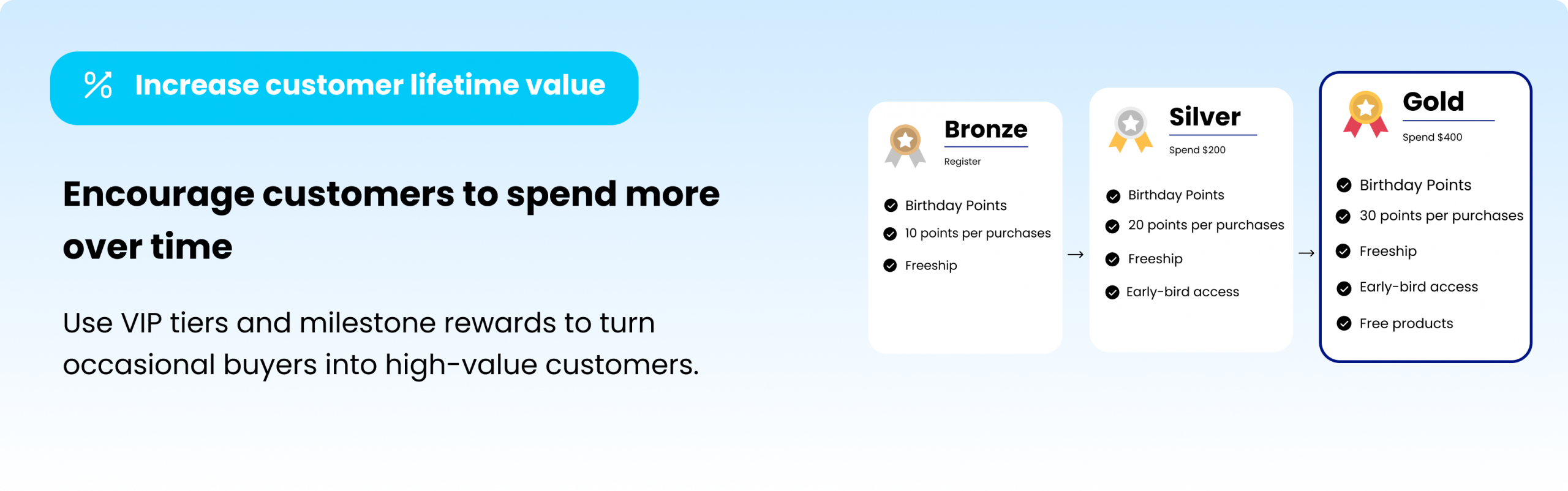 Helps you build stronger customer relationships, ensuring they keep coming back and spending more over time with rewards