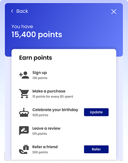 - Monitor and manage your loyalty program from in app user-friendly interface